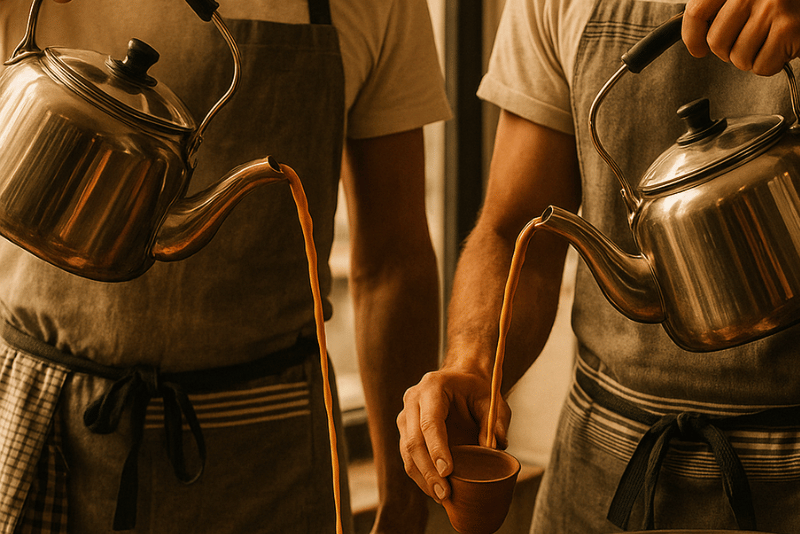 In 2018, they travelled across South Asia, immersing themselves in chai culture – tasting, learning, and understanding the craft. They returned with recipes, inspiration, and a clear purpose: to bring the true essence of handcrafted chai to the world.